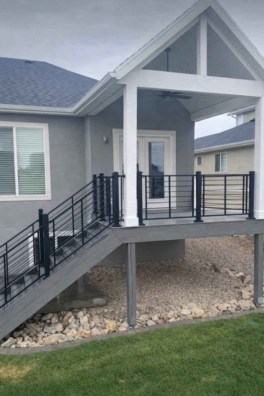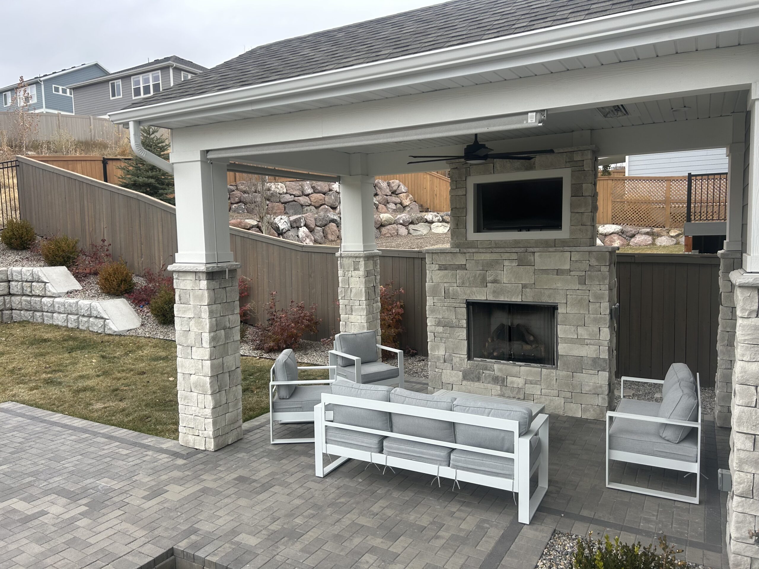 Blackrock Decks can seamlessly blend a new roof structure from your custom outdoor deck into your house by matching the existing roofing material, soffit, fascia, and gutter. Matching stucco, stone, and other exterior finishes help create a new space that looks as if it has always been a part of your home. Why not add a ceiling fan and some customized outdoor deck lighting for a day & night entertaining or hangout spot?